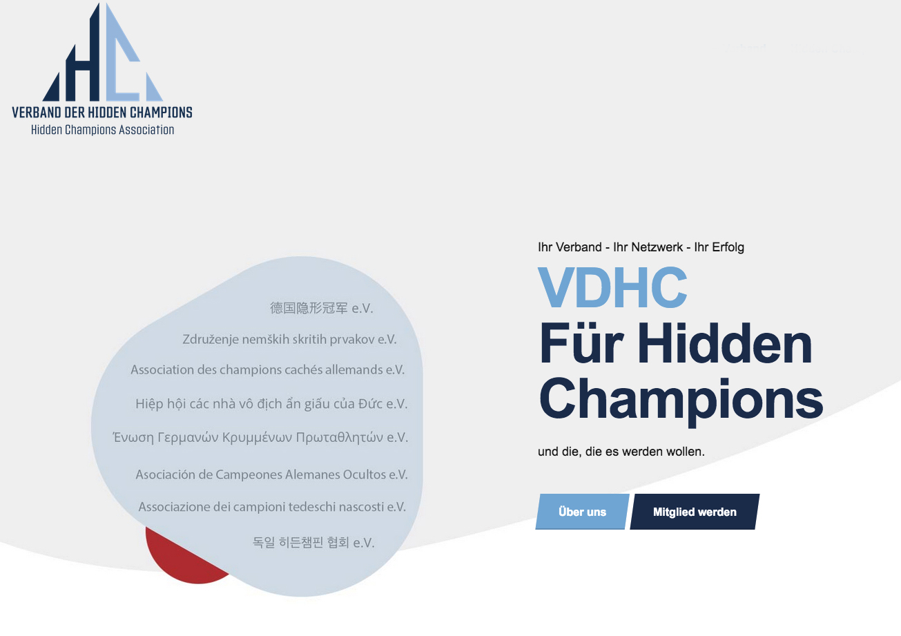 Der Verband der Hidden Champions e.V. ist der von Deutschland aus international agierende Interessens- und Mitgliederverband mittelständischer Unternehmen -> die Hidden Champions sind oder -> zu Hidden Champions werden wollen.